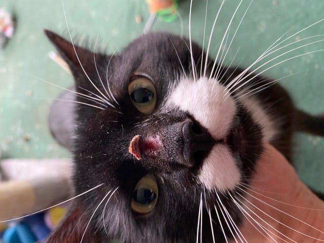 c'est assez loin je dois reprendre les transports et marcher et il fait méga froid ... je pense que j'ai marché un peu vite et avec la cage il a dû se mettre trop proche de la partie en fer et il a tapé dedans, j'ai jamais eu ce problème avant mais il fait -3 degrés là j'ai mis le turbo sans courir non plus ... il a pas mal hein mais c'est moche... et je veux juste savoir si cette peut on peut la retirer va t elle repousse etc... j'ai nettoyé déjà, après sa plaie va être à l'air libre si je coupe mais c'est un chat d'appartement je précise.