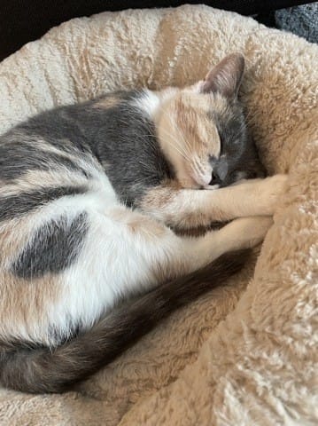 Je surveille aussi la gamelle d'eau : elle boit plutôt bien et régulièrement, donc c'est déjà ça ! J'ajoute une 2ème photo, elle a des couleurs pastel comme vous dites, elle est vraiment adorable. 😁