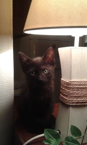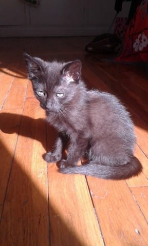 Il est super bien dans sa peau, il a très bien vécu son déracinement/déménagement. Il est très calin et joueur, indépendant et ne présente aucun problème de santé visible, en dehors d'être relativement frêle. Il a un peu la peau sur les os quoi, et il est petit.