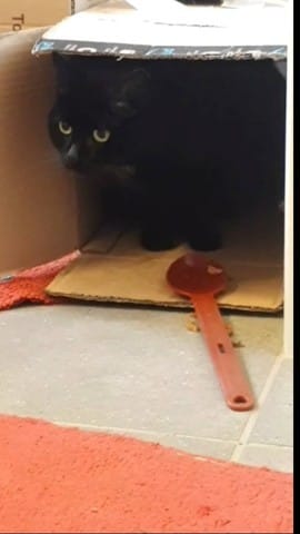 Sauf que maintenant elle a compris qu'elle peut se cacher dans la partie du carton ou on ne peut pas la voir, et donc je ne peux plus vraiment interagir avec elle.