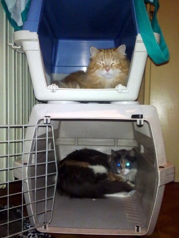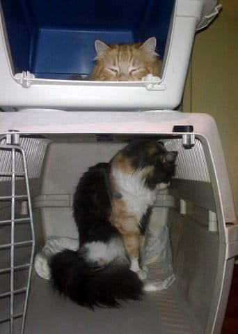 bonjour j'ai toujours des problème quand je doit partir en voyage car je doit emmener mes chats chez mes grand parent pour qu'il les garde mes c'est pas aussi facile on leurs donne des calment mais sa agit pas toute suite par exemple la dernière foie ma mère avait la main en sang pour rentrer ma chatte dans la cage moi mon autre chat m'avait griffer et mordu puis l'autre chat on a du l'enfermer et il y a une fenêtre il a sauter sur la fenêtre ou il y avait la vitre donc en résumer on aurai dit qu'il devienne fou pourtant on leurs veut pas de mal QUE FAIRE ????