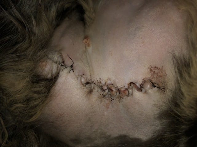 Suite à sa je suis venue la récupérer les lendemains, avec colerette que le vétérinaire m’avais donner en cas de besoins .