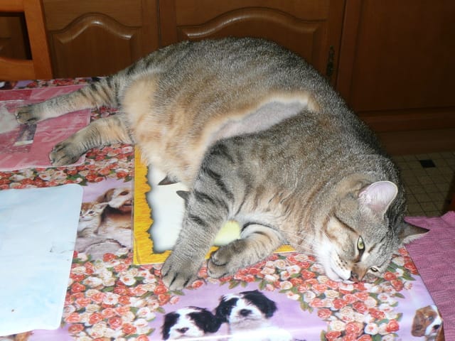 Il a fait son malaise mercredi dernier et il souffre d'une malformation et d'une péricardite. Il peut partir d'un jour à l'autre. Quant à Pupuce sa petite soeur, elle souffre d'un oedeme de l'estomac qui l'empêche de s'alimenter normalement et d'avoir un transit normal.