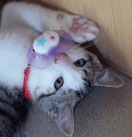 On nous a présenté, dès son arrivée, un petit chaton (Raspoutine) au caractère aventurier et téméraire, qui n'a vécu que 3 semaines auprès de sa mère avant d'être placé en fourrière. L'association l'a immédiatement récupéré, et une famille d'accueil l'a nourri au biberon et s'est occupée du sevrage et de l'éducation de ce chaton et de son frère.