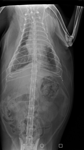 Bonjour, voilà la radio pulmonaire de mon chat de 12 ans, le vétérinaire hésite entre cardiomégalie ou tumeur proche du cœur. Un scanner à un coût important et ma minette est dyspnéique ce qui est incompatible avec une anesthésie, les oreillettes sont d'une taille limite supérieure selon ses dire. Il lui a donné un diurétique pour évacuer l'épanchement. Et des comprimés pour le cœur. J'ai peur de payer des frais importants alors que c'est peut être un cancer pour lequel on ne peut rien faire sinon palier aux symptômes. Si vous vous y connaissez pouvez vous me donner votre avis ? Tumeur ou pas de tumeur svp ?