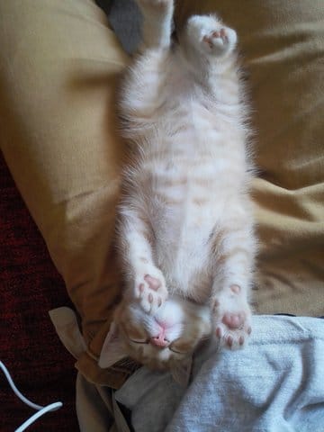 15 jours ont passé et il eternue quelque fois dans la journée et galere a miauler ,mais il mange bien et dors bien et s'amuse.