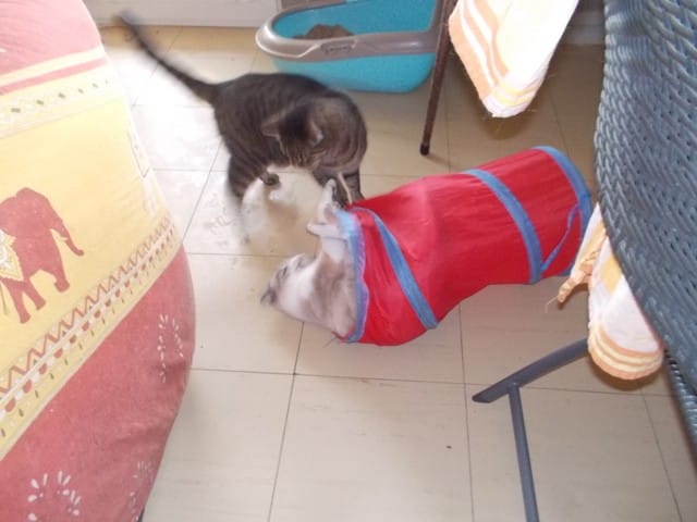 Surtout qu'Opaline n'aime qu'on la prenne dans les bras.C'est elle qui vient se faire câliner.