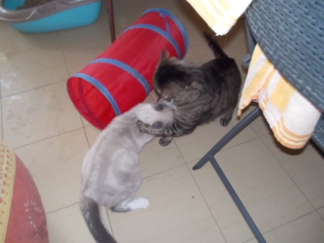Rose Persian s'adapte ,il a réussi a amadouer Rescues,lui qui d'habitude préfére s'en prendre au restant de ma petite famille.