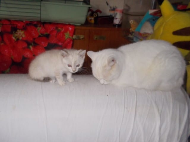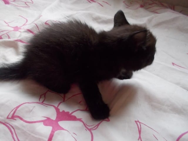 Pétale a un début de vie difficile en plus le coryza qui arrive. Pétale c'est une combattante.Si au début le restant de ma famille féline la rejetait.Maintenant elle est acceptée.