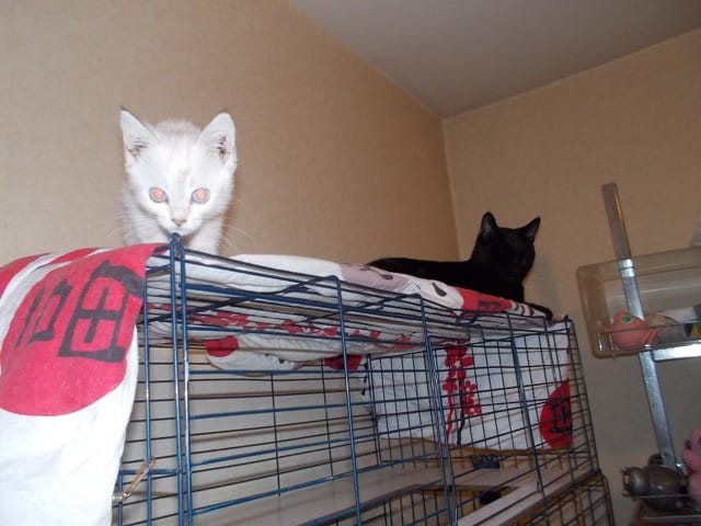 Pour sa sécurité je voulais la mettre en cage,mais non car Pétale n’arrêtait pas de pleurer.Sa première elle a dormi avec Lola.