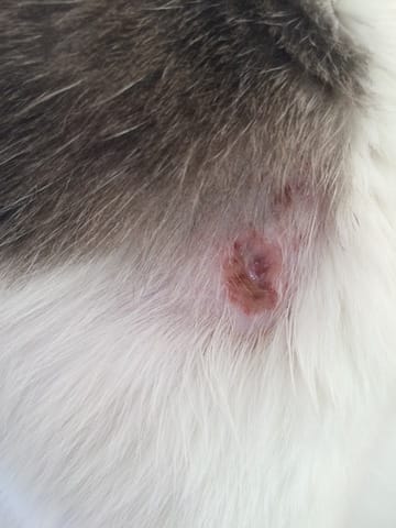 Je découvre mon chat avec une grosse blessure à l'épaule.