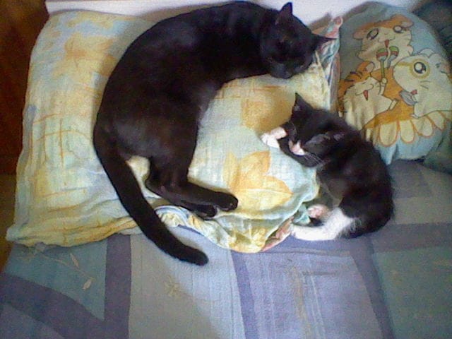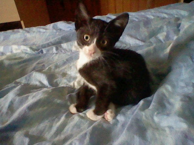 En dernier recours, serait-il un choc étant petit? il vivait pas très loin de chez moi où habitait une dizaine de chats, 3 enfants (qui prenaient les chats n'importe comment, par la queue, les oreilles, les jeter dans la maison, affreux...) il est le dernier rescapée d'une portée de 4 (Ils disaient qu'ils avaient le Typhus, mais au vétérinaire ils n'ont rien trouver, ils mourraient de blessures? Je me suis dit autant le sauver je le prends et dans la semaine, il aurait été noyer dans la baignoire... Aussi, il était pas sevrer, sa mère ne sans occuper pas je l'ai donc eu très tôt d'ailleurs, il cherchait du lait dans les 'mamelles' de mon autre mâle qui était âgée de 1 ans, il se laissait faire, image:
