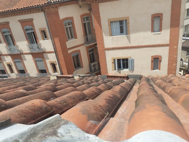 Sur des tuiles canal, il me semble que le chat a moins de risques de glisser, comme sur des ardoises par ex. ou des tuiles plates, mais à condition qu'il ne s'amuse pas à marcher juste au bord.