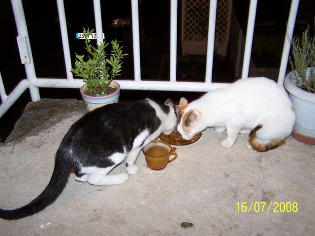 Voilà aprés Luna que je vous ai présenté eux ce sont des chats abandonnés que je nourris, les gens sont tellement méchants je leur ai même donné un prénom (c'est titou le noir et blanc, et la rousse et blanche c'est tit soeur) mais il y a également titi mon gros noir lui il est aussi abandonné mais super gentil un amour de chat