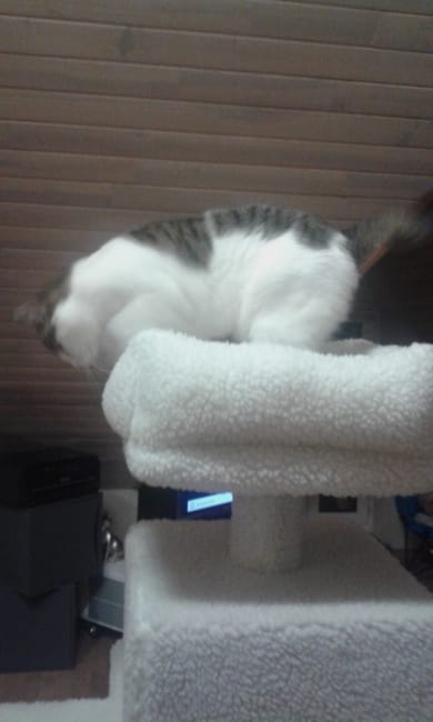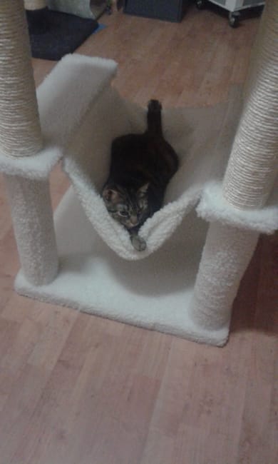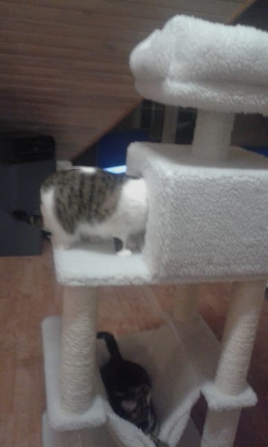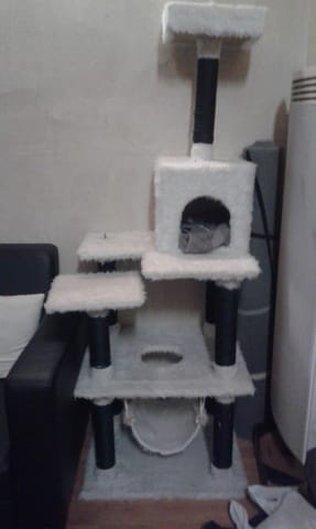 Bon sinon je viens donc vous donner quelques nouvelles. Comme vous le savez déjà j'ai commander et reçu l'arbre à chat de chez zoomalia, malheureusement la qualité de celui-ci est plus que médiocre et les plateformes au bout du premier jours sont toutes tremblantes, il y a du jeux... Donc j'en ai fait part au site et il ont vu avec le fournisseur, il m'ont demandé une photo de cet arbre à chat et le jours où ça m'a été demandé la plateforme du coté c'est cassé, le pas de vis c'est délogé du tronc... Donc bien évidemment je n'étais pas contente et ils m'on donc proposé un remboursement ou un renvois du produit neuf... J'ai pris le remboursement car non merci si c'est pour avoir le même soucis... Dire que cet arbre à chat coûte à la base 100€... Bref je leurs ai envoyé ses photos là :