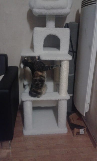 Du coup je me suis rabattu sur un autre site bien connu (Zooplus) et j'ai re-commander un arbre à chat un peu moins grand mais avec des poteaux plus large ! Normalement je devrais le recevoir demain ! C'est celui-ci que j'ai pris :