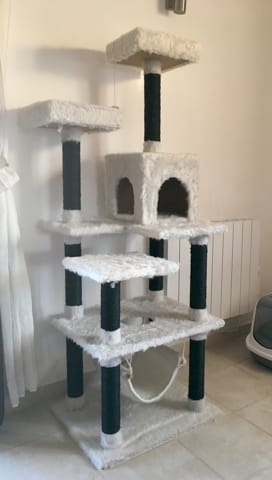 Bonjour Angeline, il est superbe cet arbre à chat, c'est bien d'avoir assez de place pour le mettre, moi j'en ai un basique faute de place mais bon, Nova ne se gêne pas pour grimper sur les meubles !