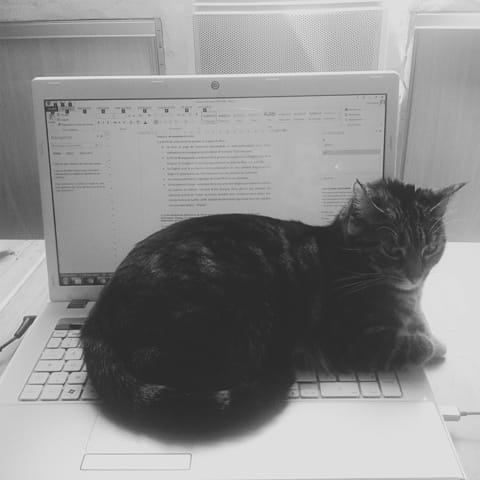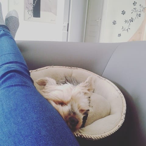 Kiara allongé en plein milieu du salon, Maïa qui ne laisse pas bosser mon chéri lol