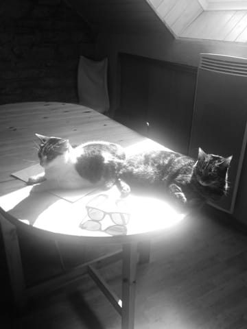 Mon petit Milou ♥ et mes Minettes sur la table du salon qui profitent du soleil ♥