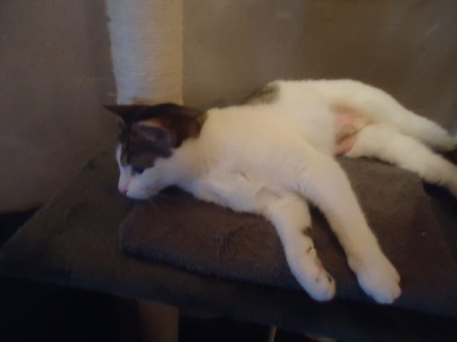 Bon je vous explique : Le vétérinaire les a enlevé comme ça, sans rien pour les shooter. Kiara à été... comment dire... HORRIBLE ! Elle ne tenais pas en place et ne se laisser pas faire, elle crachée, criée (très fort, je ne savais pas qu'un chat pouvais crier aussi fort !) et elle à griffée l'assistante assez profond :/ Mais bon le reste c'est bien passé, la cicatrice est très bien refermée mais elle est un peu rouge au niveau du pansement là ou il y avait la colle (normal).