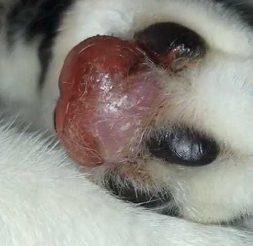 Mon chat a attrapé une masse au niveau du coussinet avez vous ça auparavant ?
