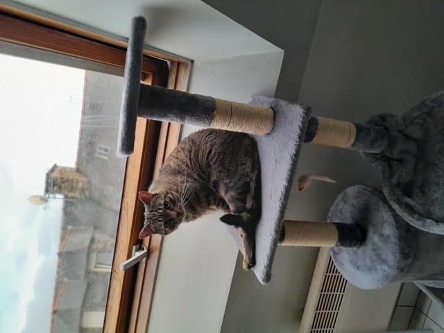 La elle est sur son arbre à chat à profiter des derniers rayons du soleil et on a fait un gros câlin, à moi d'être patient .