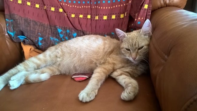 Mon chat Gamin je l'emmène chez le véto demain matin suite a une sérieuse bagarre entre chat il est rentrer cette après-midi sur 3 pattes et cette dernière bien gonflé et je prend Albane pour vérifier que tout va bien.
