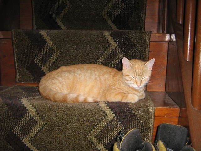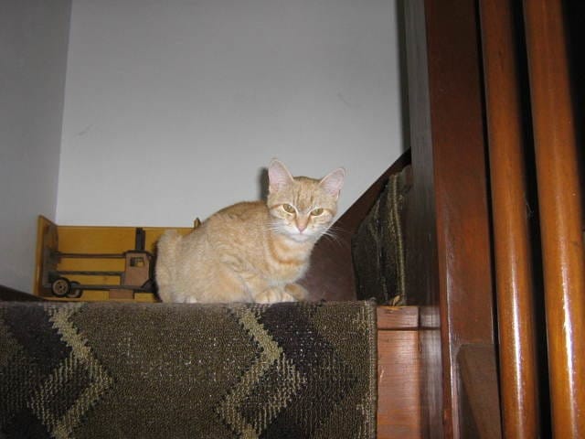 Gamin est très territorial malgré qu'il est castré et passe sa vie essentiellement dehors comme la plupart des matous (sauf l'hiver) et entre chez lui pour manger boire et avoir un peu de câlins.