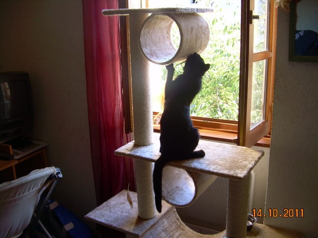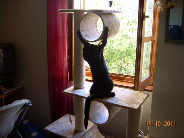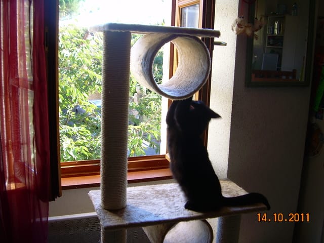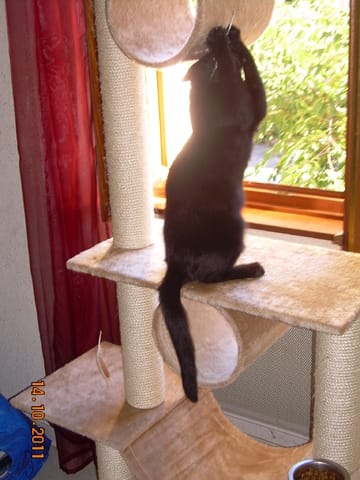 vous allez voir Garou s'acharner après la plume de tourterelle que j'ai accroché sur l'arbre à chat...