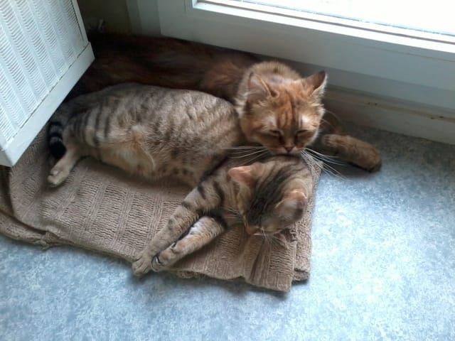 Orion et Melba sont comme mes bébés.J'ai toujours eu des chats, mais c'étaient plus ou moins ceux de la famille.Là en prenant mes deux monstres, ca a été un choix réfléchi, pour etre sur que l on pouvait les assumer, les rendre heureux, etc...(on a meme changer d appart en partie a cause d eux!) comme des gosses quoi!!