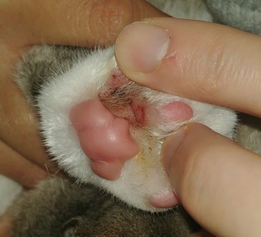 Je viens de remarquer la présence d'une plaie entre les coussinets de la patte avant de mon chat :