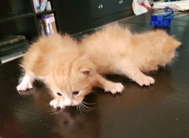 Re bonjour je publie les photos des petits chatons pour savoir s ils auront poils longs ou court. La maman a le poils court . Le papa inconnu. Merci