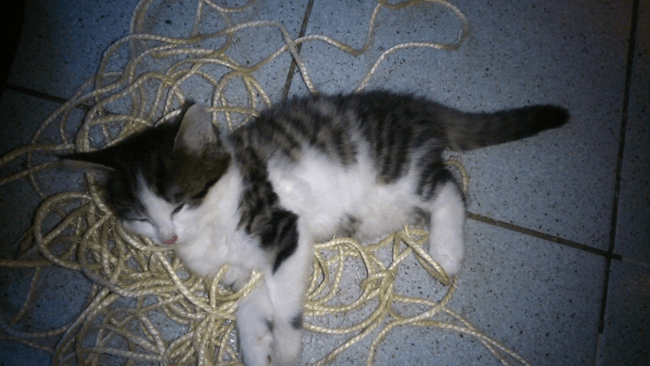 Voici Kiri a 1 mois. Maintenant j'ai une grosse bestiole poilue avec un plumeau en guise de queue ;)
