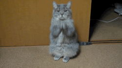 Mon chat Bilbon, fait plusieurs fois par jour, qu'il soit seul ou sur moi (il aime me grimper dessus). Il se met sur ses pattes arrières, joint ses deux pattes avant en fais un mouvement de haut en bas avec les pattes. Comme si il priait 😅