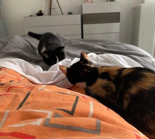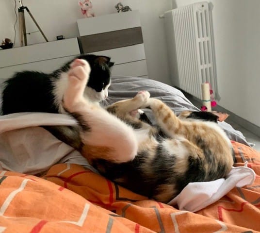 J'ai parcouru un peu tous les forums, YouTube qu'il y avait des étapes à suivre avant la rencontre entre elles. La chambre à coucher était donc dédiée à ce chaton. Le problème c'est que Nala, mon chat de 5 mois, s'est faufilé dans la chambre dès le premier jour et la rencontre s'est très très mal passée entre feulements, coup de pattes de Nala sur Sacha.