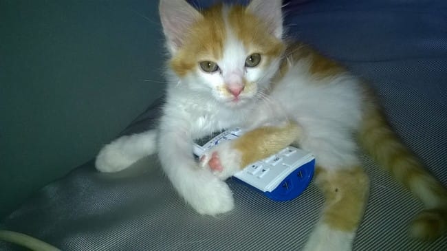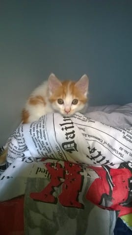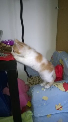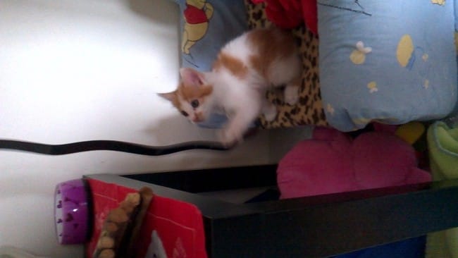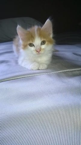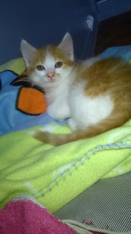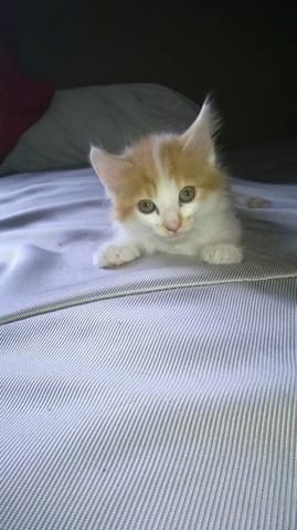 je crée se post afin de vous présenté notre nouvelle arrivante " Psycho ", c'est une chatte ( normalement c'est une femelle ) de 2 mois, elle est rousse et blanche au yeux gris/vert, et est normalement Angora ( pour se ayant eux des chatons a poils long je veux bien votre avis ).