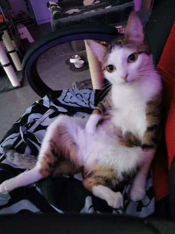 Première photo: sa cicatrice hier, je la trouvais un peu rouge donc je l'ai envoyé à mon vétérinaire qui associée à un comportement normal, et le fait qu'elle porte une collerette pour éviter les léchages à dit qu'il n'y avait rien d'anormal et qu'il ne fallait pas toucher à la cicatrice (comme si j'aurais osé.. .)