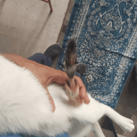 J'ai envie de dire que pour le savoir et sans lui faire mal, le simple fait de vérifier si elle te laisse lui caresser la queue jusqu'au bout sans grognement te permet de savoir tout de suite si il ya un problème.