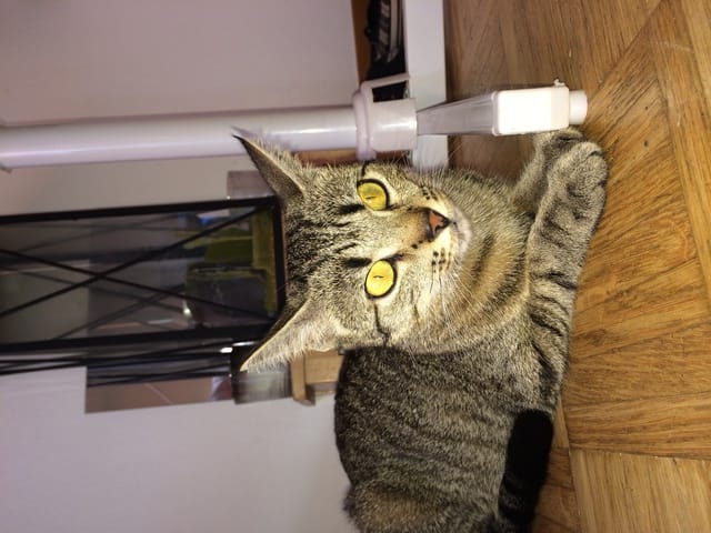 C'est pratique, je le change d'endroit à volonté. Les chats ne s'approchent pas des hélices. En plus, c'est grillagé, ils ne peuvent pas mettre leurs pattes entre le grillage car les carreaux sont trop petits pour leurs pattes.