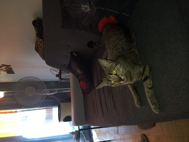 Elle se pose aussi sur le canapé pour avoir le vent directement sur elle :
