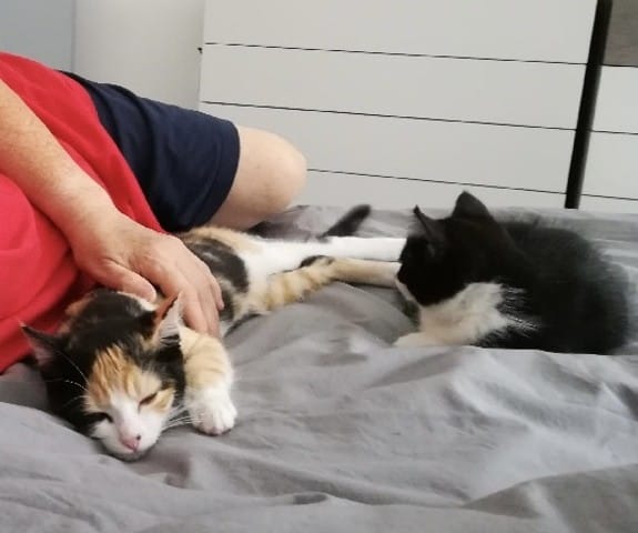 Tout s'est passé/ se passe extrêmement bien avec elle. Dès son arrivée, elle a dormi avec nous, s'est laissé caresser et ne s'est pas beaucoup caché. En bref, elle s'est montré très entreprenante dans sa relation avec les humains.