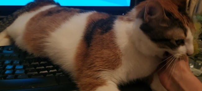 Elle a toujours eu ce comportement un peu compliqué et ambigu : très demandeuse (que de miaous simplement pour qu’on lui réponde), nous suivant de partout, mais n’aimant pas beaucoup les câlins et nous mordant plusieurs fois par jour avec plus ou moins de violence.