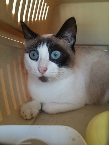 Ce qui nous a interpellés, c'est qu'elle n'est absolument pas farouche. Elle est resté (presque) sagement sur mes genoux tout le temps du trajet jusqu'à chez nous. Au passage nous avons récupéré une cage de transport et des croquettes, mais à part ça, nous n'avons rien d'autre... :S