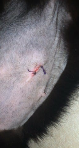 Pas de collerette ni pansement, juste deux points de sutures avec fils résorbables.