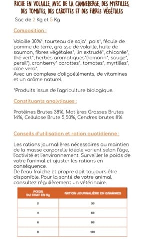 Bonjour. 30%de volaille me semblent nettement insuffisants pour votre chat. Personnellement, je donne plutôt Purizon ou Orijen. Le pourcentage de protéines est plus important.