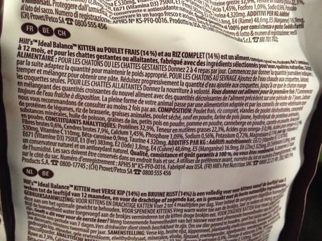 Un taux de protéines sous les 40% signifie un taux de glucides trop élevé. Ici, une faible part des protéines est d'origine animale. C'est bien là le problème. Hill's utilise de la viande fraîche (14%) en tête de liste. Ce qui ne veut rien dire (argument marketing) puisque l’extrusion cuit cette viande à très haute température. Il vaut mieux privilégier de la viande déshydratée car après cuisson il reste 3 à 4 fois de viande fraîche. Dans cette recette, il reste moins de 5% de viande après cuisson. La composition n'est pas très transparente mais on peut en déduire que la viande occupe seulement environ 15% de la composition. Par contre beaucoup trop de pois, de riz.