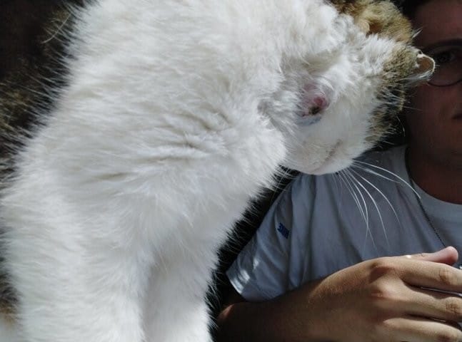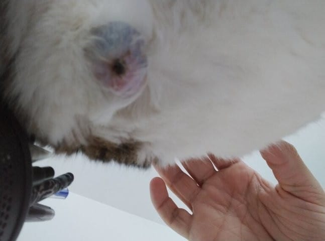 j'ai pas préciser mais c'est le chat de ma mere mais c'est que aujourd'hui la boule est plus grosse mais habitude elle est bien plus petit mais ca a redégonflé, je pensais a une boule de grèse