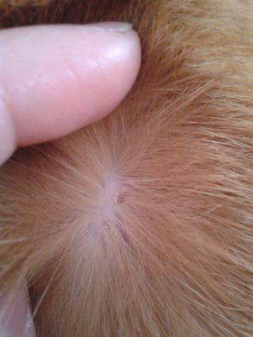 bonsoir! il y a quelques mois j'avais découvert une croute sur le dos de Dulcey, les poils partaient avec celle ci.