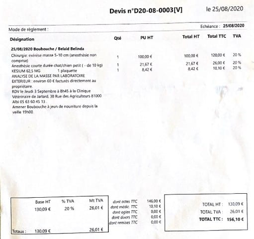 Je fais donc appel à votre générosité. En comptant les opérations et les soins, j’aurais besoin d’un montant de 280€ pour financer le reste des dépenses.