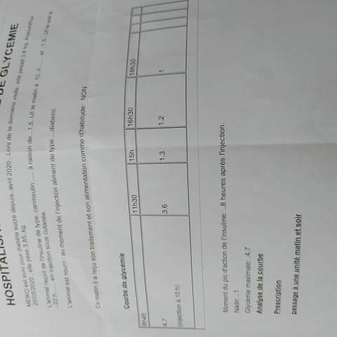 Je les ai rappelé car mon conjoint s'est un peu emporter a la clinique... Je voulais savoir ce qu'il en était... En me renseignant mieux je vois que 4mg/l correspond a 352 umol/l c'est plutôt bon enfait car c'est uniquement au-delà de 450 umol/l que c'est mauvais donc Meïko va plutôt bien mais ce qui est étrange c'est qu'elle stagne a 4 malgré linjectio'n d'insuline.... Serait telle stabiliser a 4? Mais si elle mange son taux devrait augmenter ? C'est étrange